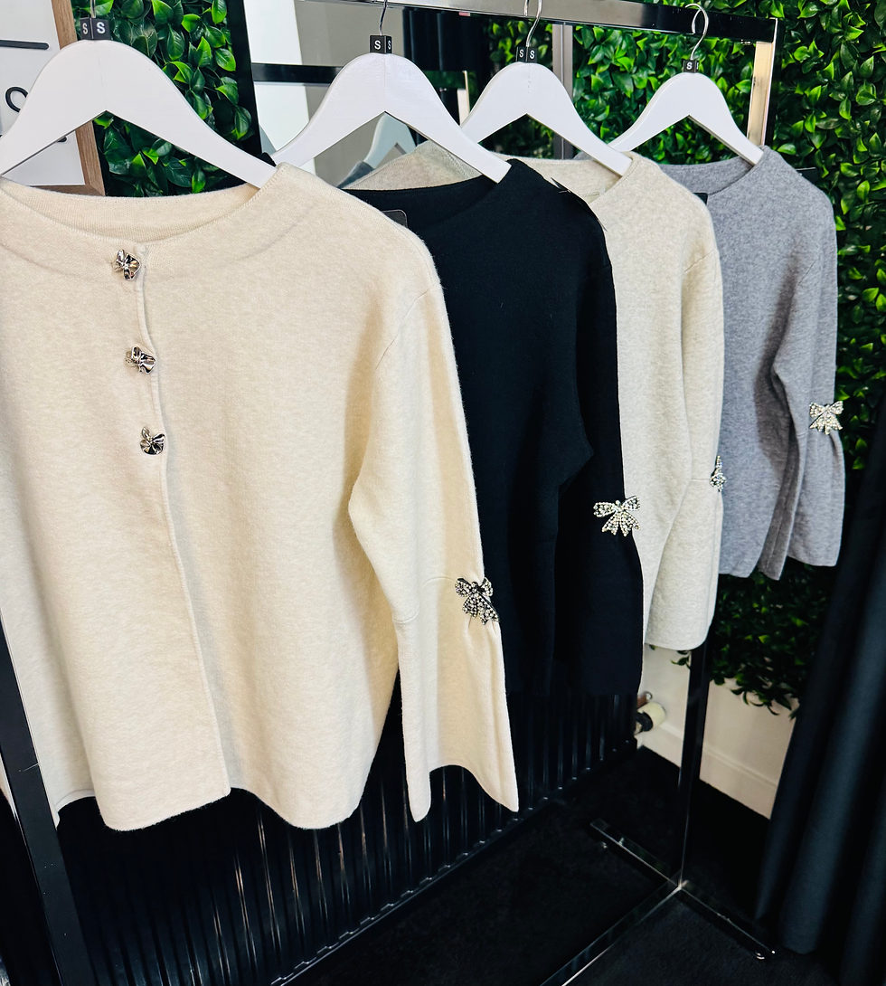 Boutique 3005-2 Crystal Bow Cardigan Grey